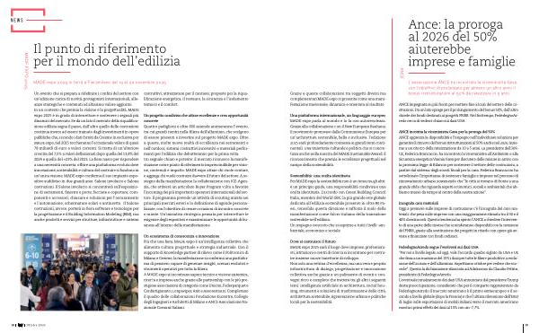 ANCE incontra la viceministra Gava per la proroga del 50 % ANCE apprezza la disponibilità e l’ impegno nell’ individuare soluzioni per garantire il rinnovo del bonus ristrutturazioni al 50 % anche nel 2026, insieme a un ritocco della rateizzazione da 10 a 5 anni. La presidente dell’ AN- CE, Federica Brancaccio, ha incontrato la viceministra all’ Ambiente e alla Sicurezza energetica Vannia Gava per discutere delle misure in arrivo con la prossima legge di Bilancio per sostenere il settore delle costruzioni, a partire dal sistema degli sconti fiscali per la casa. Federica Brancaccio ha sottolineato l’ importanza di sostenere famiglie e imprese nel processo di rinnovamento urbano, sostenendo che“ le città si trovano di fronte a una grande sfida che riguarda aspetti economici, sociali e ambientali che abbiamo messo da tempo al centro della nostra azione”.