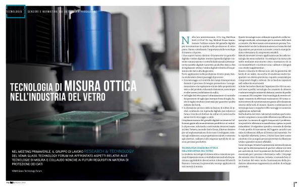 TECNOLOGIA DI MISURA OTTICA NELL’ INDUSTRIA DEL VETRO Le moderne tecnologie di misura ottica consentono processi di ispezione mono e multidimensionali ad alta precisione, applicabili in diversi settori. Johannes Schuler di Keyence Germany ha presentato esempi applicativi di vari metodi di misura.