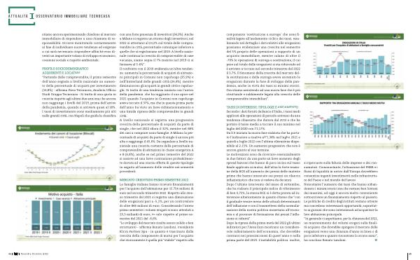 PROFILO SOCIODEMOGRAFICO ACQUIRENTI E LOCATARI “ Partendo dalle compravendite , il primo semestre dell ’ anno segnala a livello nazionale un aumento della percentuale di acquisti per investimento ( 16,8 %) - afferma Piero Terranova , Analista Ufficio Studi Gruppo Tecnocasa - Si tratta di una quota in crescita rispetto agli ultimi due anni ma che ancora non raggiunge i livelli del 2019 , prima dell ’ arrivo della pandemia , quando si arrivava quasi al 18 %. I tassi di investimento sono mediamente più alti nelle grandi città , con Napoli che guida la classifica con una forte presenza di investitori ( 34,9 %). Anche a Milano si registra un ritorno degli investitori , nel 2022 si attestano al 23,2 % sul totale delle compravendite in città , percentuale comunque inferiore a quelle che si registravano nel 2019 . A livello nazionale continua la crescita di compravendite di case vacanza , siamo sopra il 7 % mentre nel 2019 ci si fermava al 5-6 %”. Il confronto con il 2019 evidenzia un ’ altra tendenza : aumenta la percentuale di acquisti di abitazioni principali in Comuni non capoluogo ( 35,9 %) e nell ’ hinterland delle grandi città ( 26,9 %), mentre diminuiscono gli acquisti in grandi città e capoluoghi . Si tratta di una tendenza iniziata con l ’ arrivo della pandemia , che ha raggiunto il suo apice nel 2021 quando l ’ acquisto in Comuni non capoluogo aveva toccato il 37 %, ma che in questa prima parte dell ’ anno ha visto un lieve ridimensionamento e una timida ripresa delle compravendite in grandi città . A livello nazionale si registra una progressiva crescita della percentuale di acquisti da parte di single , che nel 2022 sfiora il 32 %, mentre nel 68 % dei casi a comprare sono famiglie . A Milano la percentuale di acquisti da parte di single è ancora più alta e raggiunge il 45,6 %. Da segnalare a livello nazionale una crescita costante della percentuale di compravendite di abitazioni in classe energetica A e B ( 6,8 %), anche se nel primo semestre del 2022 si assiste ad una lieve contrazione probabilmente dovuta ad una scarsa offerta di queste tipologie in seguito all ’ aumento delle vendite nei semestri precedenti .
