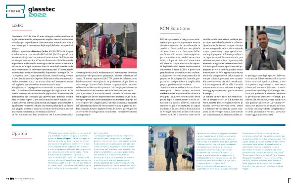 RCN si è preparata a lungo e con entusiasmo per questo importante evento che attira visitatori da tutto il mondo , in qualità di finestra del mercato globale del vetro . La scelta di fare parte dell ’ a- rea Gimav si è rivelata una strategia importante e vincente perché , ancora una volta , si è potuto attirare l ’ attenzione sul Made in Italy e mostrare la capacità degli italiani di essere tecnicamente innovativi . Il team RCN si è posto con grande fiducia e aspettativa nei confronti di glasstec , certo di avere parecchio da proporre e da spiegare alla clientela , preparandosi così per offrire il meglio della propria produzione ai visitatori . “ Particolarmente evidente è stato l ’ interesse per RD Clean Concept - racconta Davide Ricchi , Responsabile Ricerca e Sviluppo - il nuovo sistema per i bordi puliti dopo la laminazione che ha attirato molti addetti ai lavori , curiosi di saperne di più e soprattutto di capire l ’ utilizzo e la possibilità di installarlo in forni già esistenti , anche se di marca diversa da RCN . E non sono mancate le