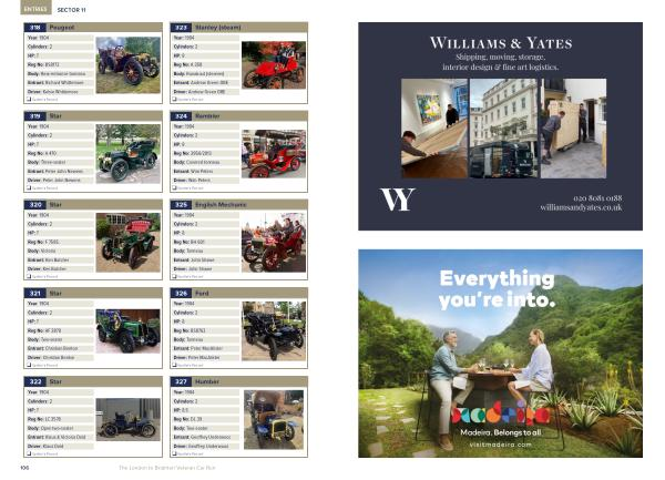 Year: 1904 Cylinders: 2 HP: 7 Reg No: A 470 Body: Three-seater Entrant: Peter John Newens Driver: Peter John Newens o Spotter’ s Record