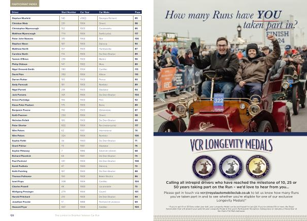 * If you’ ve got 10 or 25 Runs under your belt, your Longevity Medal can be purchased for just £ 26. If you’ ve entered 50 or more, the Royal Automobile Club will present your gold 50-year Longevity Medal at this year’ s Participants’ Reception, taking place on Saturday 2 November at the Club’ s Pall 1114 Mall clubhouse.