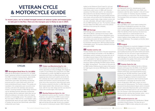 VETERAN CYCLE GUIDE traded as the Pedersen Cycle Frame Co. Ltd. and other manufacturers such as Humber and Co. Ltd. made them under licence. In 1899, with financial assistance from RA Lister and Co. Ltd. of Dursley in Gloucestershire, the Dursley-Pedersen Cycle Co. Ltd. was formed. Although only about 8,000 bicycles were made until just before the First World War, when production ceased, quite a large number survive and are very collectable, although original examples of the pre-1904 machines are rare. The machine entered this year dates from 1900 and is one of the earliest machines to be built by this company.