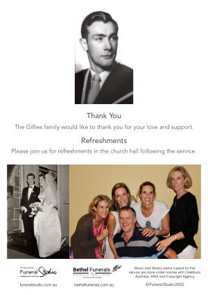 Thank You The Gillies family would like to thank you for your love and support .