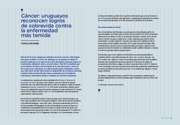 cáncer es la enfermedad más grave para los uruguayos, la más temida (62 %) y la más