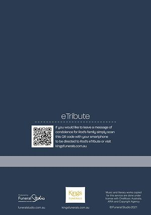 If you would like to leave a message of condolence for Rod ’ s family simply scan this QR code with your smartphone to be directed to Rod ’ s eTribute or visit kingsfunerals . com . au