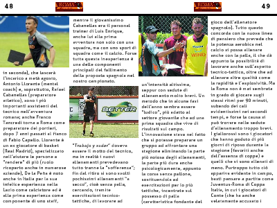 gioco dell’allenatore spagnolo). Tutto questo concorda con la nuova linea di pensiero che prevede che la potenza aerobica nel calcio si possa allenare anche con la palla, il che dà appunto la possibilità di lavorare anche sull’aspetto tecnico-tattico, oltre che ad allenare altre qualità come la rapidità e l’esplosività. Ma la Roma non è mai sembrata in grado di giocare sugli stessi ritmi per 90 minuti, subendo dei cali evidentissimi nei secondi tempi, e forse la causa si può trovare nelle sedute d’allenamento troppo brevi. I giallorossi sono i giocatori che hanno goduto di più giorni di riposo durante la stagione (favoriti anche dall’assenza di coppe) e quelli che si sono allenati di meno. Purtroppo tutto ciò appariva evidente in campo, basti pensare a partite come Juventus-Roma di Coppa Italia, in cui i giocatori di Conte (che ha anche velatamente accusato i