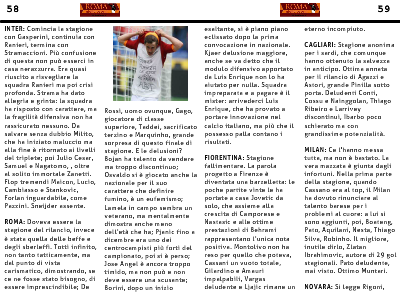 CAGLIARI: Stagione anonima per i sardi, che comunque hanno ottenuto la salvezza in anticipo. Ottima annata per il rilancio di Agazzi e Astori, grande Pinilla sotto porta. Deludenti Conti, Cossu e Nainggolan, Thiago Ribeiro e Larrivey discontinui, Ibarbo poco schierato ma con grandissime potenzialità.