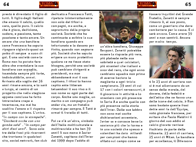 dedicato a Francesco Totti, ripetute ininterrottamente non solo dai tifosi o compagni, ma anche, e soprattutto dalla propria società. Società che ha continuato a esibire la sua bandiera quando era infortunato e lo davano per finito, quando non segnava più. Società che ha saputo erigere un muro protettivo qualora ce ne fosse stato bisogno, perché una società può cambiare dirigenti e presidenti, ma non abbandonerà mai il suo capitano. I tifosi lo hanno capito ante litteram tatuandosi il suo viso o il suo nome su ogni parte del corpo. Anche una moglie, un marito o un compagno può andar via, ma un fratello rimarrà per sempre. E Totti è ormai il fratello di tutti.