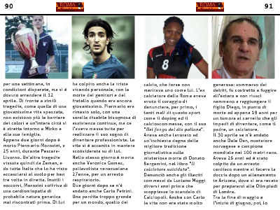 calcio, che forse non meritava uno come lui. L'ex calciatore della Roma aveva avuto il coraggio di denunciare, per primo, i tanti mali di questo sport come il doping ed il calcioscommesse, con il suo "Nel fango del dio pallone". Aveva anche lavorato ad un'inchiesta degna della migliore tradizione giornalistica sulla misteriosa morte di Donato Bergamini, nel libro "Il calciatore suicidato". Denunciò anche gli illeciti commessi da Luciano Moggi diversi anni prima che scoppiasse lo scandalo di Calciopoli. Anche con Carlo la vita non era stata molto