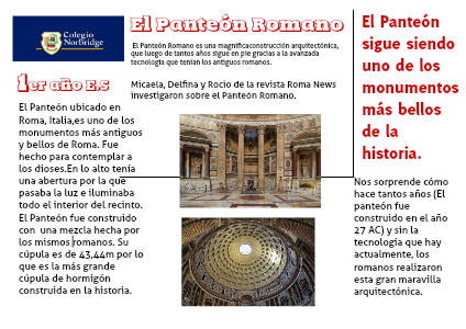 Micaela, Delfina y Rocio de la revista Roma News investigaron sobre el Panteón Romano.