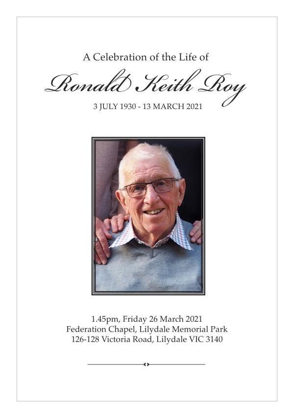 1.45pm , Friday 26 March 2021 Federation Chapel , Lilydale Memorial Park 126-128 Victoria Road , Lilydale VIC 3140