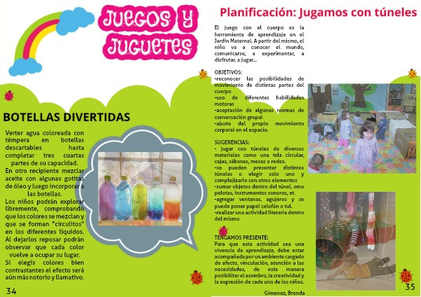 Para que esta actividad sea una vivencia de aprendizaje, debe estar acompañada por un ambiente cargado de afecto, vinculación, atención a las necesidades, de esta manera posibilitar el asombro, la creatividad y la expresión de cada uno de los niños.