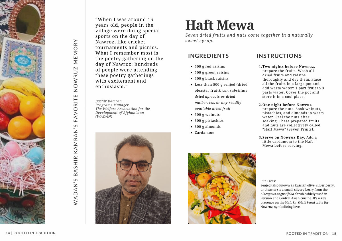 2. One night before Nowruz, prepare the nuts. Soak walnuts, pistachios, and almonds in warm water. Peel the nuts after soaking. These prepared fruits and nuts are collectively called“ Haft Mewa”( Seven Fruits).