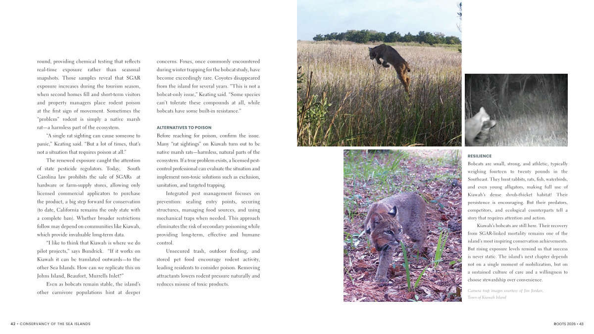Kiawah’ s bobcats are still here. Their recovery from SGAR-linked mortality remains one of the island’ s most inspiring conservation achievements. But rising exposure levels remind us that success is never static. The island’ s next chapter depends not on a single moment of mobilization, but on a sustained culture of care and a willingness to choose stewardship over convenience.
