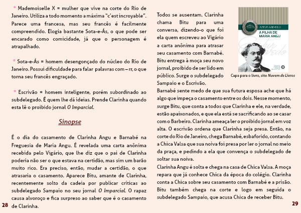 * Mademoiselle X = mulher que vive na corte do Rio de Janeiro. Utiliza a todo momento a máxima “c’est incroyable”. Parece uma francesa, mas seu francês é facilmente compreendido. Elogia bastante Sota-e-Ás, o que pode ser encarado como comicidade, já que o personagem é atrapalhado.