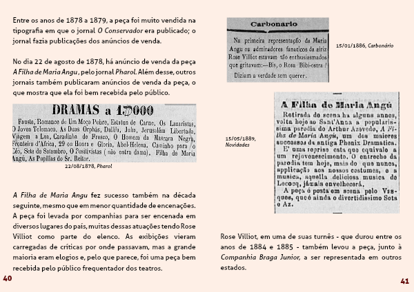 Rose Villiot, em uma de suas turnês - que durou entre os anos de 1884 e 1885 - também levou a peça, junto à Companhia Braga Junior, a ser representada em outros estados.
