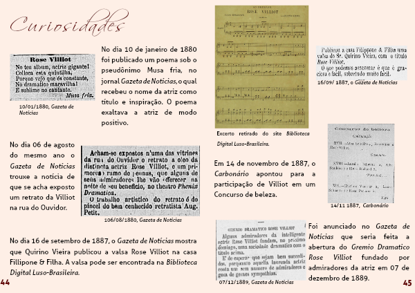 Foi anunciado no Gazeta de Notícias que seria feita a abertura do Gremio Dramatico Rose Villiot fundado por admiradores da atriz em 07 de dezembro de 1889.