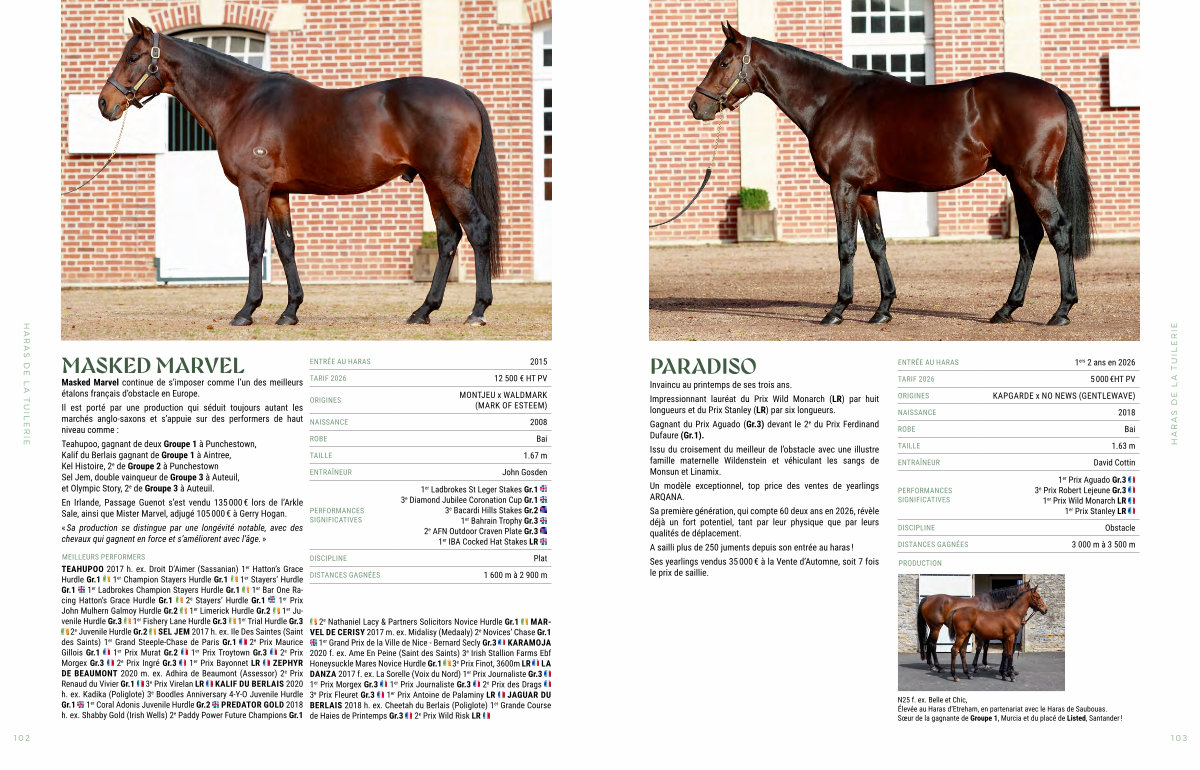 Issu du croisement du meilleur de l’ obstacle avec une illustre famille maternelle Wildenstein et véhiculant les sangs de Monsun et Linamix.