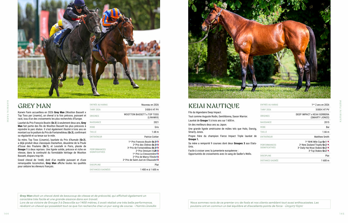 Nous sommes ravis de ce premier cru de foals et nos clients semblent tout aussi enthousiastes. Les poulains ont en commun un bel équilibre et d’ excellents points de force- Gregory Vayre