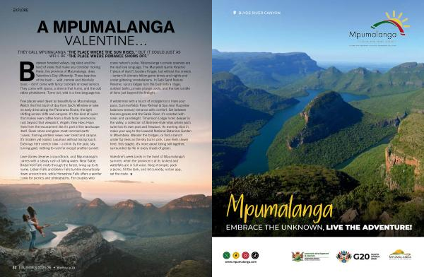 THEY CALL MPUMALANGA“ THE PLACE WHERE THE SUN RISES,” BUT IT COULD JUST AS WELL BE“ THE PLACE WHERE ROMANCE SHOWS OFF.”