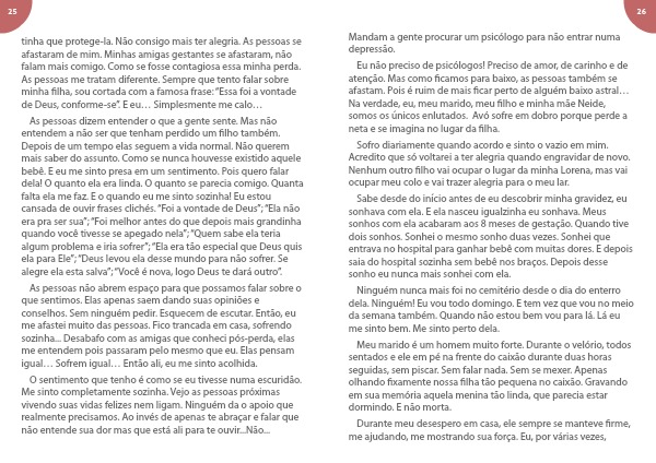 Sofro diariamente quando acordo e sinto o vazio em mim. Acredito que só voltarei a ter alegria quando engravidar de novo. Nenhum outro filho vai ocupar o lugar da minha Lorena, mas vai ocupar meu colo e vai trazer alegria para o meu lar.