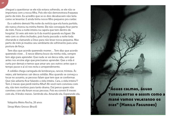 cheguei a questionar se ele não estava sofrendo, se ele não se importava com a nossa filha. Pois ele não demonstrava fraqueza perto de mim. Eu acredito que se os dois desabassem não teria como se levantar. E ainda tinha nosso filho pequeno pra cuidar.