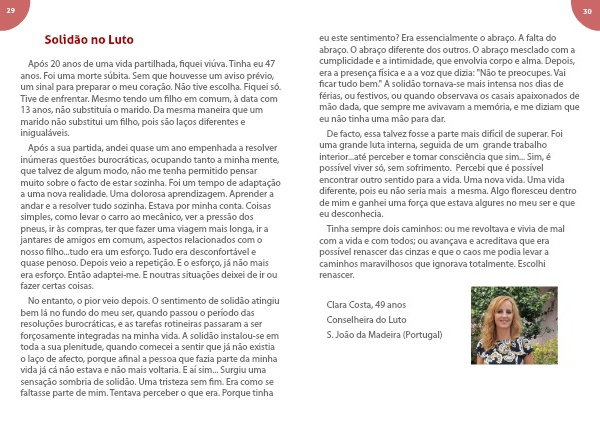 De facto, essa talvez fosse a parte mais difícil de superar. Foi uma grande luta interna, seguida de um grande trabalho interior...até perceber e tomar consciência que sim... Sim, é possível viver só, sem sofrimento. Percebi que é possível encontrar outro sentido para a vida. Uma nova vida. Uma vida diferente, pois eu não seria mais a mesma. Algo floresceu dentro de mim e ganhei uma força que estava algures no meu ser e que eu desconhecia.