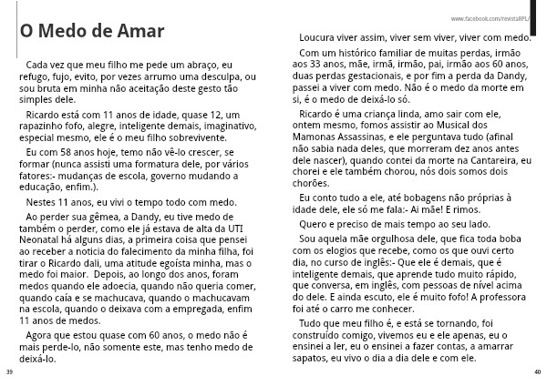 Ricardo é uma criança linda, amo sair com ele, ontem mesmo, fomos assistir ao Musical dos Mamonas Assassinas, e ele perguntava tudo (afinal não sabia nada deles, que morreram dez anos antes dele nascer), quando contei da morte na Cantareira, eu chorei e ele também chorou, nós dois somos dois chorões.