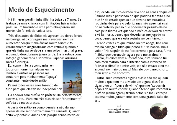 Eu, como mãe, a acompanhei em todos os momentos, alguns eu me lembro e outros as pessoas me contaram pois minha mente "apaga" constantemente desde então.