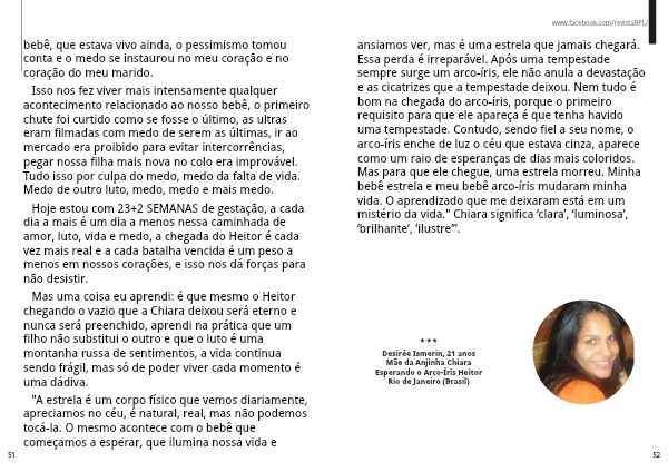 bebê, que estava vivo ainda, o pessimismo tomou conta e o medo se instaurou no meu coração e no coração do meu marido.