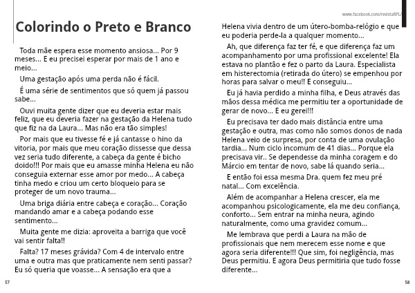 Ah, que diferença faz ter fé, e que diferença faz um acompanhamento por uma profissional excelente! Ela estava no plantão e fez o parto da Laura. Especialista em histerectomia (retirada do útero) se empenhou por horas para salvar o meu!! E conseguiu...