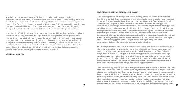 Aku ketawa besar mendengar. Dia berkata,“ Akak ada tempah tudung ala Fareeda 10 helai kat tailor, esok kalau akak tak dapat ambil, Anne tolong ambilkan boleh tak?”. Aku sedikit pelik kerana tukang jahit itu rumahnya sejalan dengan rumah Kak Cah. Tapi aku pula yang disuruhnya. Kak Cah mengambil tanganku dan menghulurkan duit RM500 untuk bayaran tudung esok. Aku semakin binggung dengan Kak Cah. Oleh kerana aku faham kesibukkan dia, aku pun bersetuju.