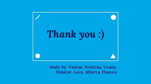 Thank you :) Made by: Vanina, Hristina, Yoana, Dimitar, Lora, Alberta, Plamen