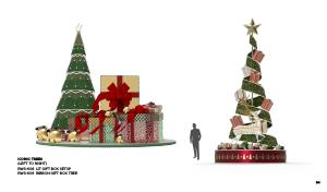 ICONIC TREES ( LEFT TO RIGHT ) RWS-608 LIT GIFT BOX SETUP RWS-609 RIBBON GIFT BOX TREE