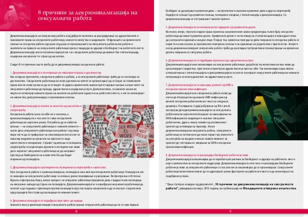 која е релевантна за сексуалната индустрија. Декриминализацијата исто така ги унапредува безбедните