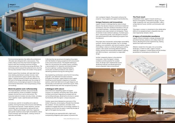 Whether viewed from the water, the surrounding landscape, or within its walls, Lagoon Crescent celebrates Langebaan’ s unique beauty and the limitless possibilities of contemporary architecture. ■