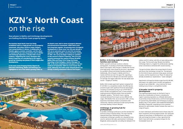 As more individuals and families look to these areas for both investment and living opportunities, the continued release of new phases in developments such as Ballito Hills and Izinga Eco-Estate is a clear signal that the North Coast will remain a property hotspot for the foreseeable future. ■