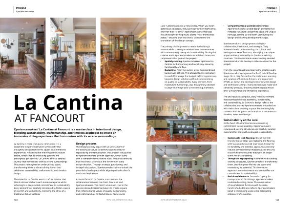 • Reclaimed elements: Instead of opting for mass-produced furnishings, Xperiencemakers revitalised existing pieces. The combination of reupholstered furniture with bespoke, handcrafted additions reflects Xperiencemakers’ belief in minimising waste while celebrating artisanal craftsmanship. www. sabuildingreview. co. za 161