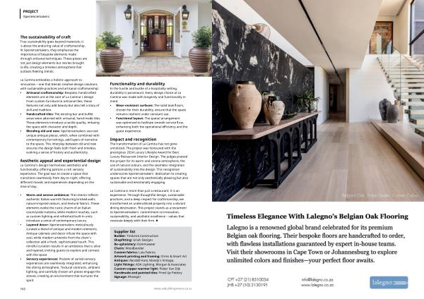 La Cantina is more than just a restaurant; it is an experience. Through thoughtful design, sustainable practices, and a deep respect for craftsmanship, we transformed an underutilised property into a vibrant dining destination. This project stands as a testament to Xperiencemakers’ commitment to innovation, sustainability, and aesthetic excellence – values that resonate deeply with their firm. ■