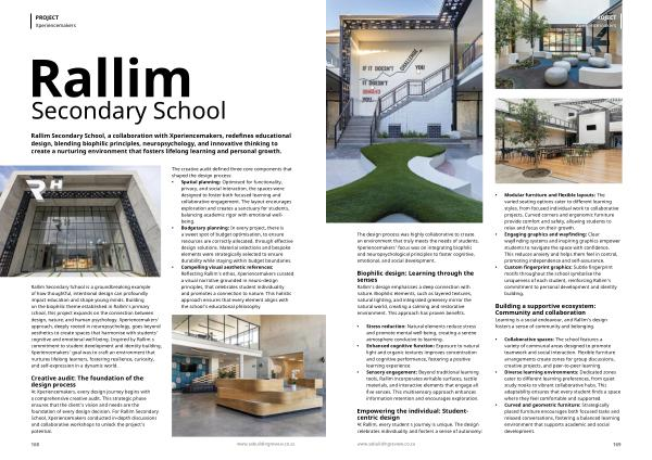 Rallim Secondary School, a collaboration with Xperiencemakers, redefines educational design, blending biophilic principles, neuropsychology, and innovative thinking to create a nurturing environment that fosters lifelong learning and personal growth.