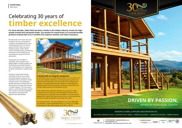 For three decades, Sabie Poles has been a leader in the timber industry, known for highquality treated and untreated timber. Our passion for wood drives us to provide durable products treated with CCA or Tanalith E for superior weather and insect resistance.