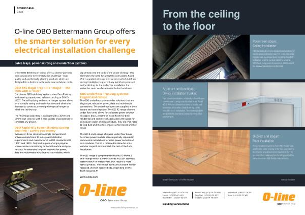 O-line OBO Bettermann Group offers a diverse portfolio with solutions for every installation challenge – high quality and aesthetically pleasing products which are designed for a faster installation to save on labour costs.