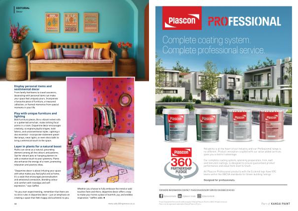 “ Dopamine decor is about infusing your space with what makes you feel joyful and at home. It’ s a style that encourages personalisation and emotional connection, blending colour and comfort with nostalgia and selfexpression,” says Geffen.