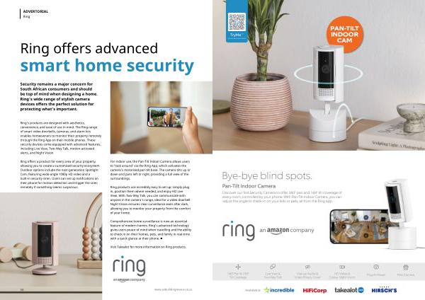 Security remains a major concern for South African consumers and should be top of mind when designing a home. Ring’ s wide range of stylish camera devices offers the perfect solution for protecting what ' s important.