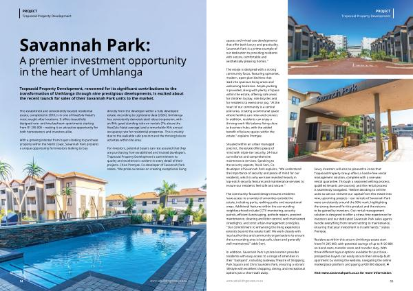 PROJECT Trapezoid Property Development spaces and mixed-use developments that offer both luxury and practicality. Savannah Park is a prime example of our dedication to providing residents with secure, comfortable and aesthetically pleasing homes.”