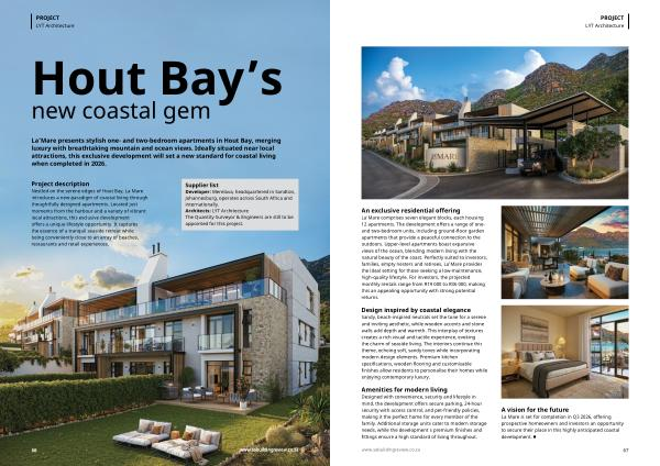 La’ Mare comprises seven elegant blocks, each housing 12 apartments. The development offers a range of oneand two-bedroom units, including ground-floor garden apartments that provide a peaceful connection to the outdoors. Upper-level apartments boast expansive views of the ocean, blending modern living with the natural beauty of the coast. Perfectly suited to investors, families, empty nesters and retirees, La’ Mare provides the ideal setting for those seeking a low-maintenance, high-quality lifestyle. For investors, the projected monthly rentals range from R19 000 to R36 000, making this an appealing opportunity with strong potential returns.