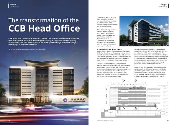 When the opportunity arose to refurbish this existing facility into a modern and forwardlooking banking headquarters, AMA Architects embraced the challenge, driven by a commitment to architectural innovation, new technologies, and a refinement of the current architectural aesthetics.