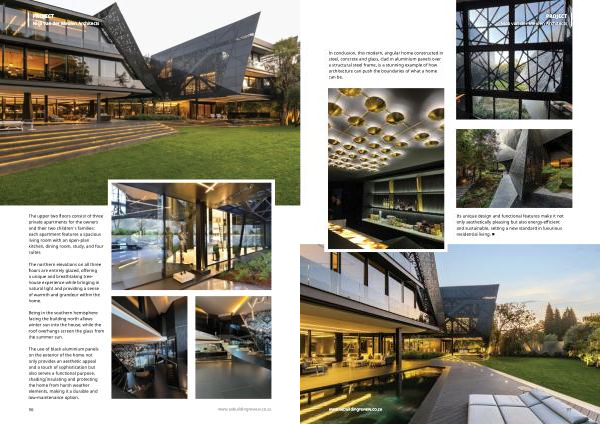 Its unique design and functional features make it not only aesthetically pleasing but also energy-efficient and sustainable, setting a new standard in luxurious residential living. ■ www. sabuildingreview. co. za 97