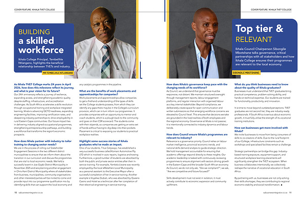 How does Council ensure Ikhala’ s programmes are relevant to industry? Relevance is a governance priority. Council relies on labour market intelligence, provincial economic trends, and national skills demand analysis to guide strategic direction. We hold management accountable for ensuring that academic offerings respond directly to these insights. Our academic leadership is tasked with continuously reviewing programmes to ensure alignment with sectors driving growth in the Eastern Cape and the broader South African economy. As Council, we do not only ask,“ Are we compliant?”; we ask,“ Are we competitive and future-focused?”